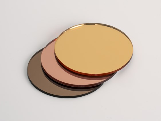 Benefiting from being half the weight of plate glass mirror with five times the impact strength, acrylic mirror is often used as a more economical alternative to glass mirror. Gold and bronze colours are available if a metallic finish is required.
