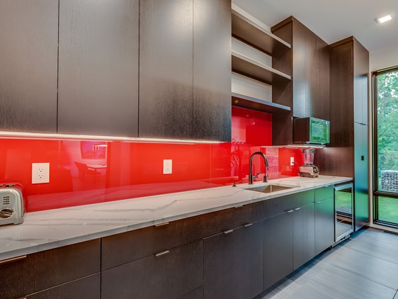 High gloss coloured acrylic splashbacks create a sleek, contemporary look to your kitchen.