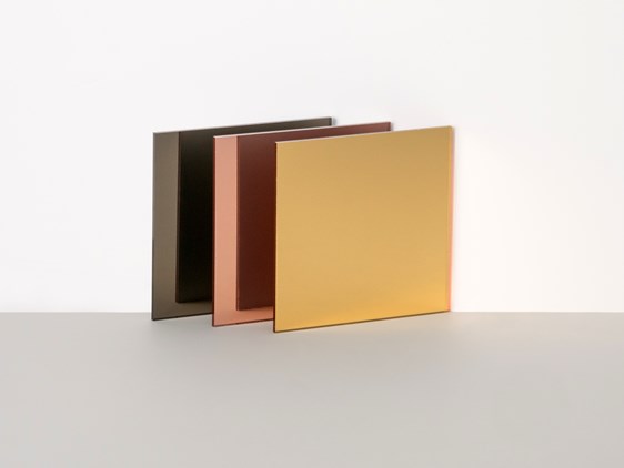 Benefiting from being half the weight of plate glass mirror with five times the impact strength, acrylic mirror is often used as a more economical alternative to glass mirror. Gold and bronze colours are available if a metallic finish is required.